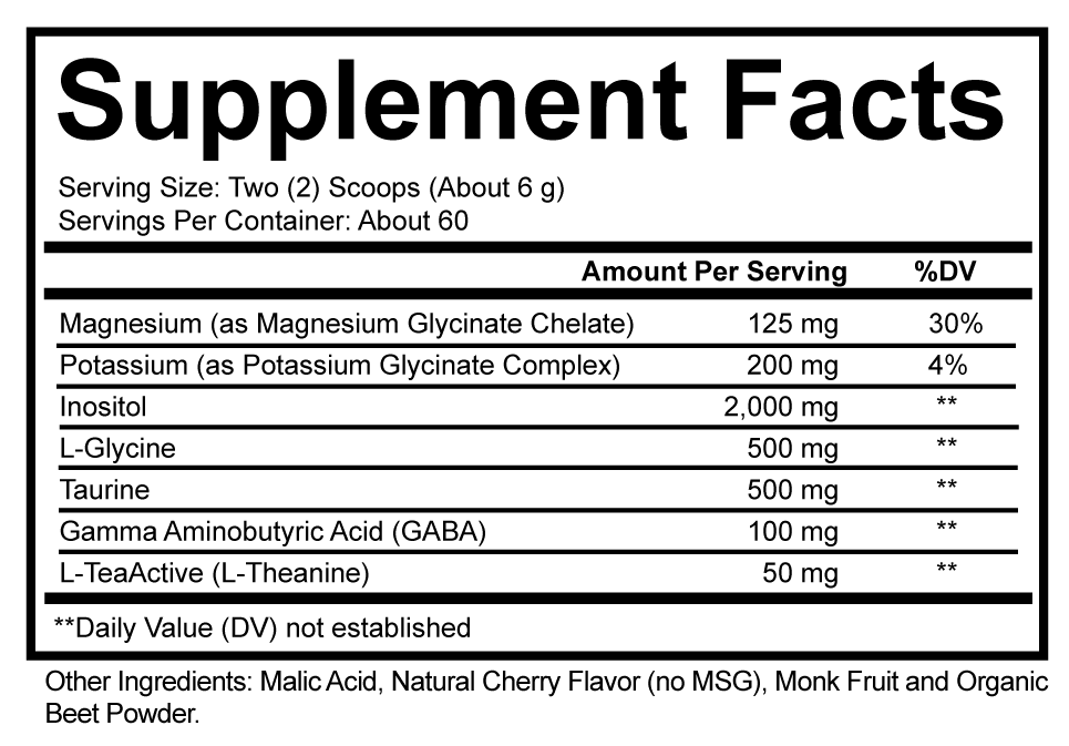 Contains clinical doses of inositol, glycine, taurine & theanine